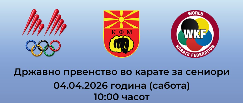 Карате федерацијата на РС Македонија го организира Државното првенство за сениори, кое ќе се одржи на ден 04.05.2026 година (сабота) во спортската сала „Крсте Мисирков“, нас. Ченто, Скопје. Ова првенство воедно претставува и изборно натпреварување за селектирање на репрезентацијата која ќе ја претставува државата на Европското првенство за сениори, што ќе се одржи во периодот од 20 до 24 мај 2026 година во Франкфурт, Германија